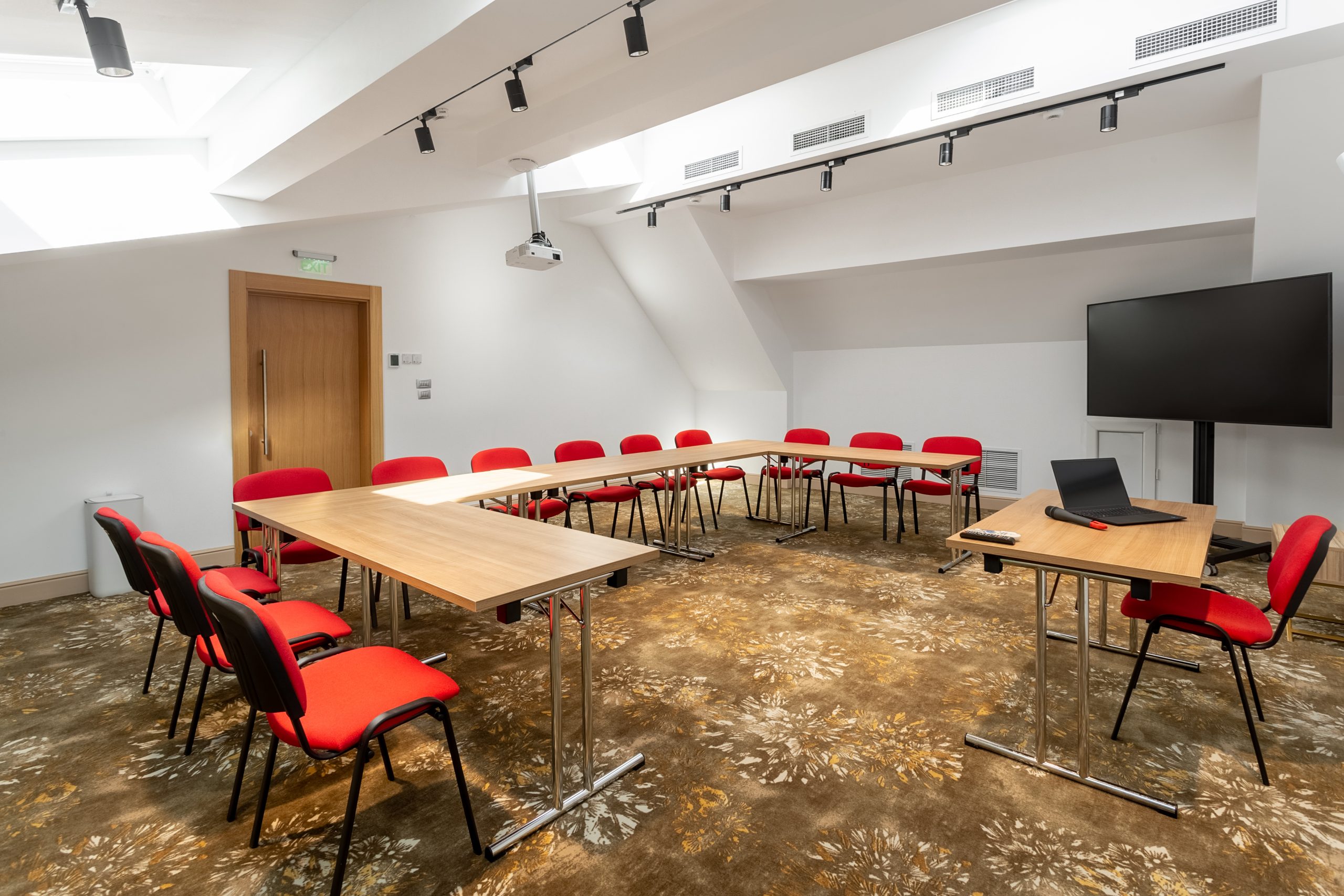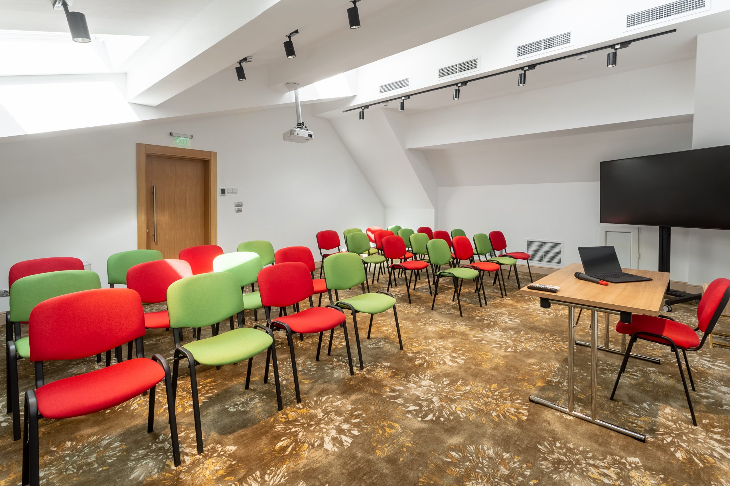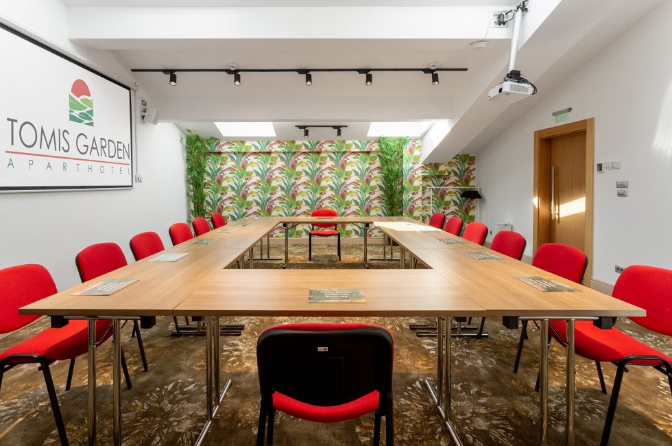 The conference rooms have standard equipment included: video projector, projection screen, sound system, 75″ LCD TV, Wi-Fi internet, wireless microphone, flipchart and consumables.